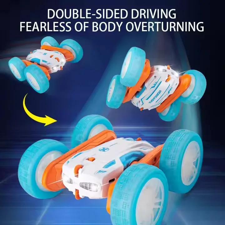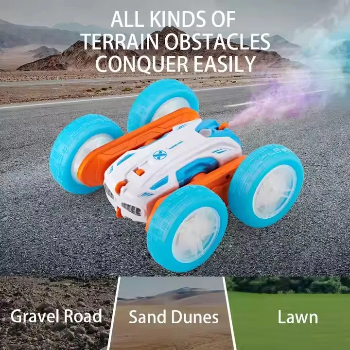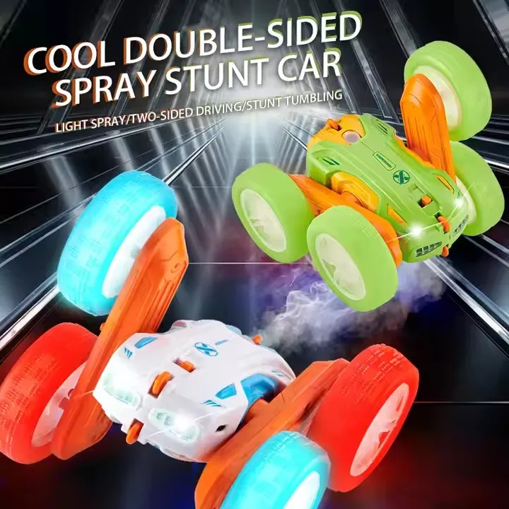 ITTL 2.4GHZ Remote Racing Toy Car Double-Sided Spray Stunt High-Speed Rotation Roll Drift Cool Lights Charging for Children